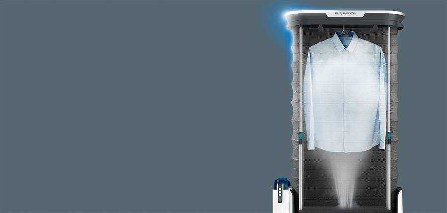 The first steamer that dewrinkles and sanitizes automatically by Rowenta.