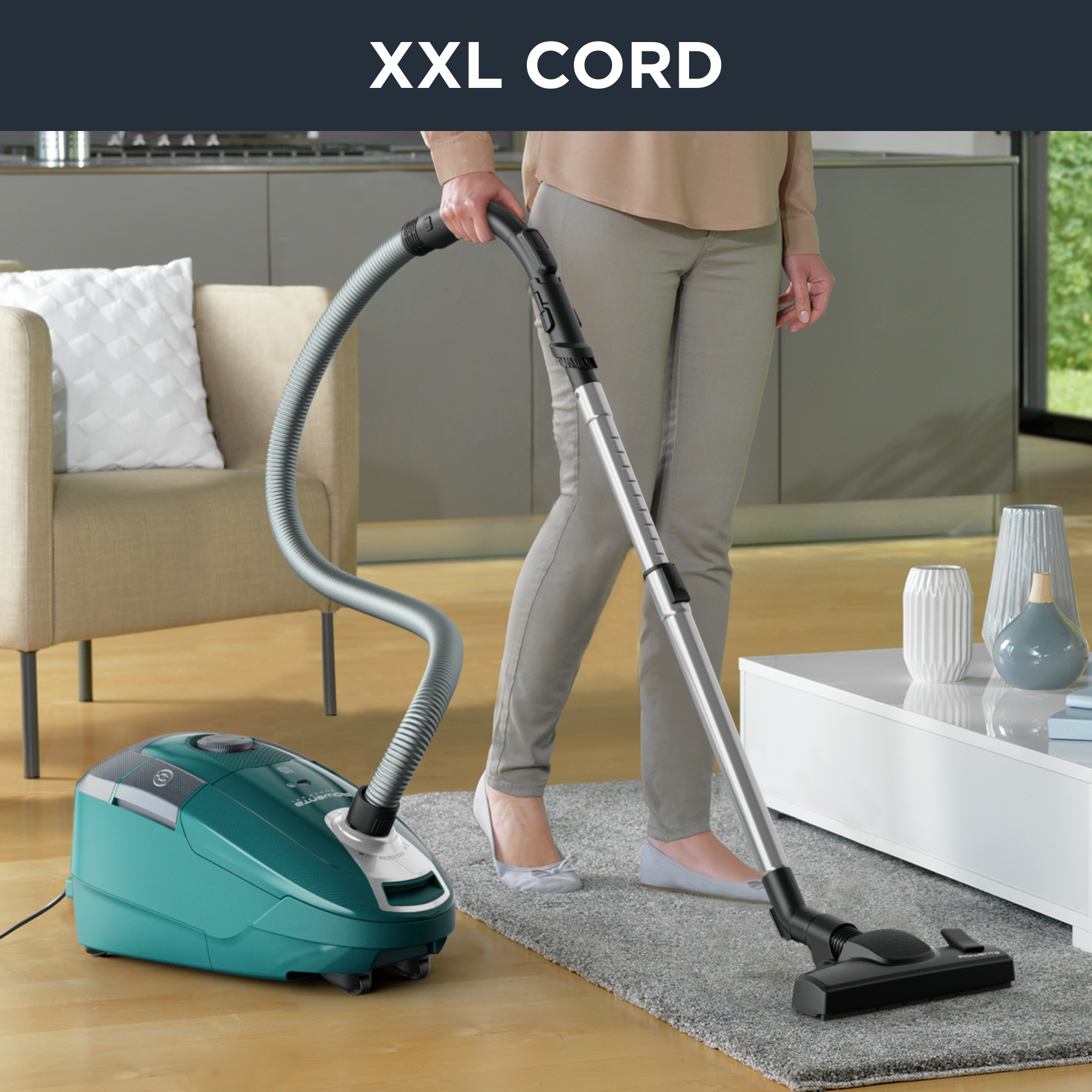 Garantendo una potenza di pulizia XXL, silenziosità impressionante e libertà di movimento, l'aspirapolvere con sacco Power XXL di Rowenta offre soluzioni di pulizia eccezionali per spazi abitativi di ampie dimensioni. Questo aspirapolvere ad alte prestazioni è dotato di un cavo di alimentazione extra lungo da 8,4 m, per un raggio di 11 m che ti permette di raggiungere fino a 95 m2 senza necessità di scollegare la spina. La capacità XXL di 4,5 L permette una pulizia più semplice con meno svuotamenti, mentre la combinazione della tecnologia del motore EffiTech e della spazzola di aspirazione ad alta efficienza offre risultati eccezionali giorno dopo giorno. Le prestazioni si uniscono a funzioni convenienti: il sistema autochiudente dei sacchetti Hygiene + impedisce ogni contatto con la polvere mentre la tecnologia migliorata di silenziosità offre un'esperienza di pulizia più fluida per risultati senza paragoni.