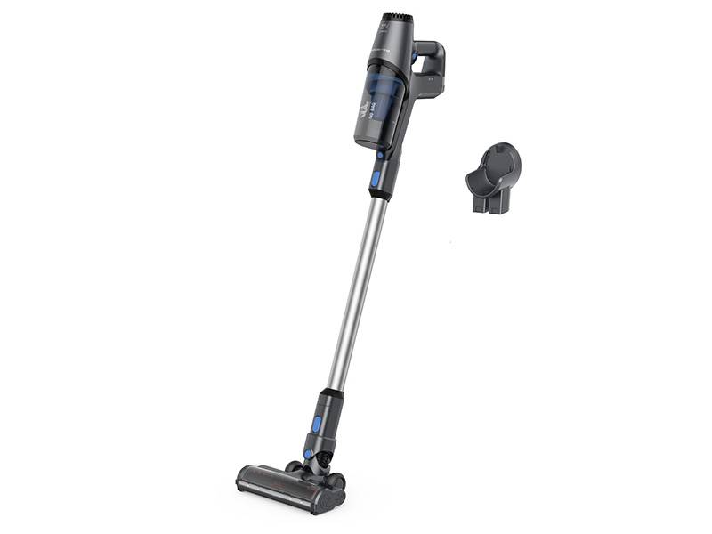 Aspirapolvere senza fili per una pulizia semplice in pochissimo tempo La batteria al litio da 22 V garantisce 45 minuti di autonomia nella modalità di potenza minima Efficacia in una sola passata grazie alla spazzola motorizzata e al potente motore DC Spazzola con luci LED per una pulizia facile anche nei punti più bui Pratico formato senza fili e massima facilità d'uso Base di ricarica da muro per riporre comodamente l'aspirapolvere e gli accessori