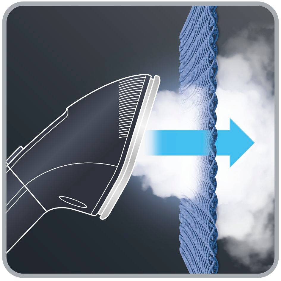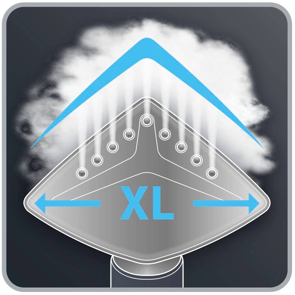 Sistema di supporto verticale Press & Steam per una doppia azione di rimozione delle pieghe Testa vapore XL Delta per risultati rapidi e precisi nei punti più difficili 1800W di potenza ed erogazione continua del vapore di 35 g/min per una stiratura altamente efficiente Grazie al tempo di riscaldamento rapido di soli 45 secondi, il dispositivo è sempre pronto quando serve 3 livelli di vapore per un uso su qualsiasi tessuto, dai più delicati ai più spessi