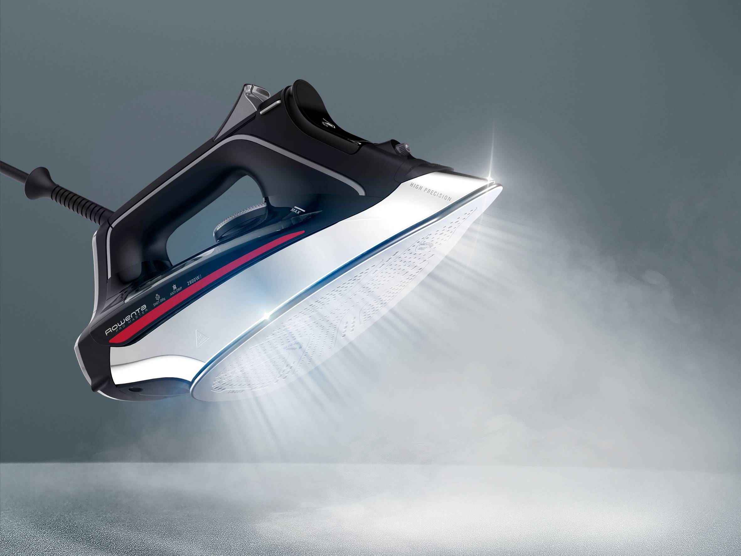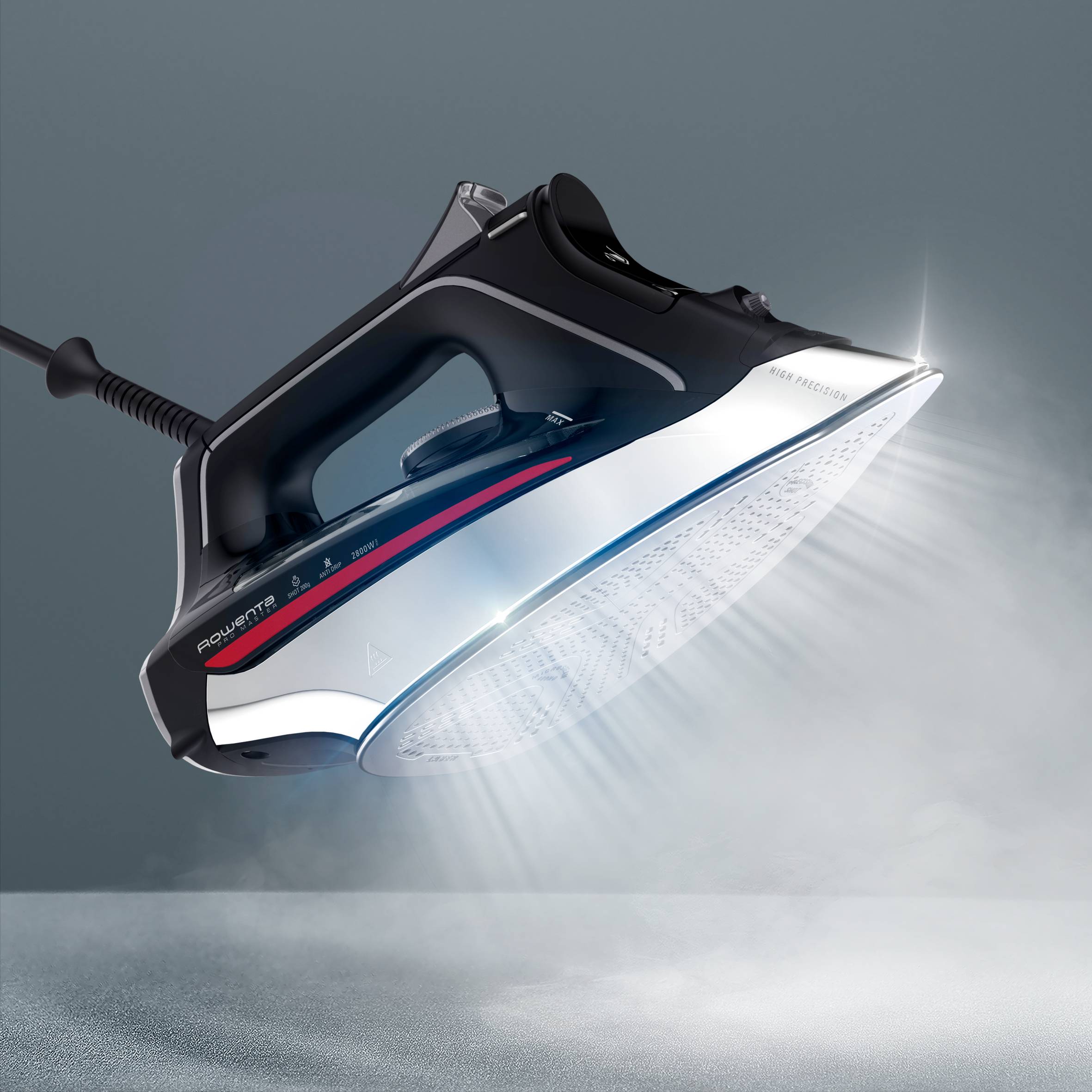 Il ferro da stiro a vapore Rowenta Pro Master combina velocità e potenza per risultati professionali a casa. La piastra Microsteam 400D offre la migliore distribuzione del vapore sul mercato* per sessioni di stiratura ultrarapide. La sua potente emissione di vapore di 50 g/min e il colpo vapore di 200 g/min assicurano risultati di stiratura professionali anche sulle pieghe più difficili. Il sistema anticalcare abbinato alla finitura laser della piastra garantisce prestazioni del vapore durature.