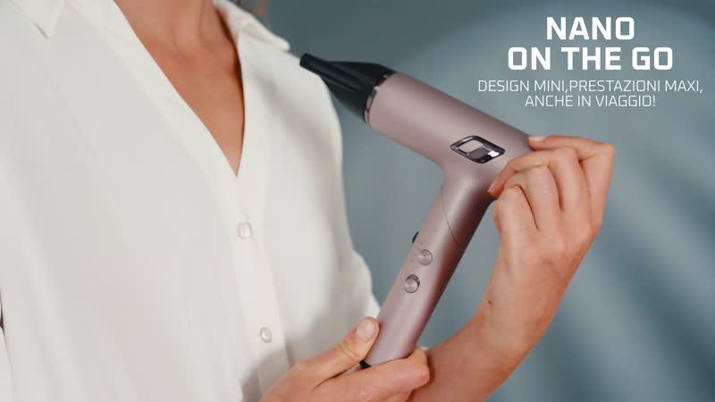 Scopri NANO ON THE GO: il 70% più compatto e pieghevole, con prestazioni e praticità senza paragoni. Asciugatura rapida con un flusso d’aria ultra potente, fino a oltre 266 km/h, grazie al motore Brushless NANO ad alta velocità e al sensore di temperatura di precisione. Scelto dal 97%*** dei consumatori, NANO ON THE GO unisce formato ultra compatto e peso leggerissimo, garantendo un’asciugatura ottimale e sempre confortevole.
